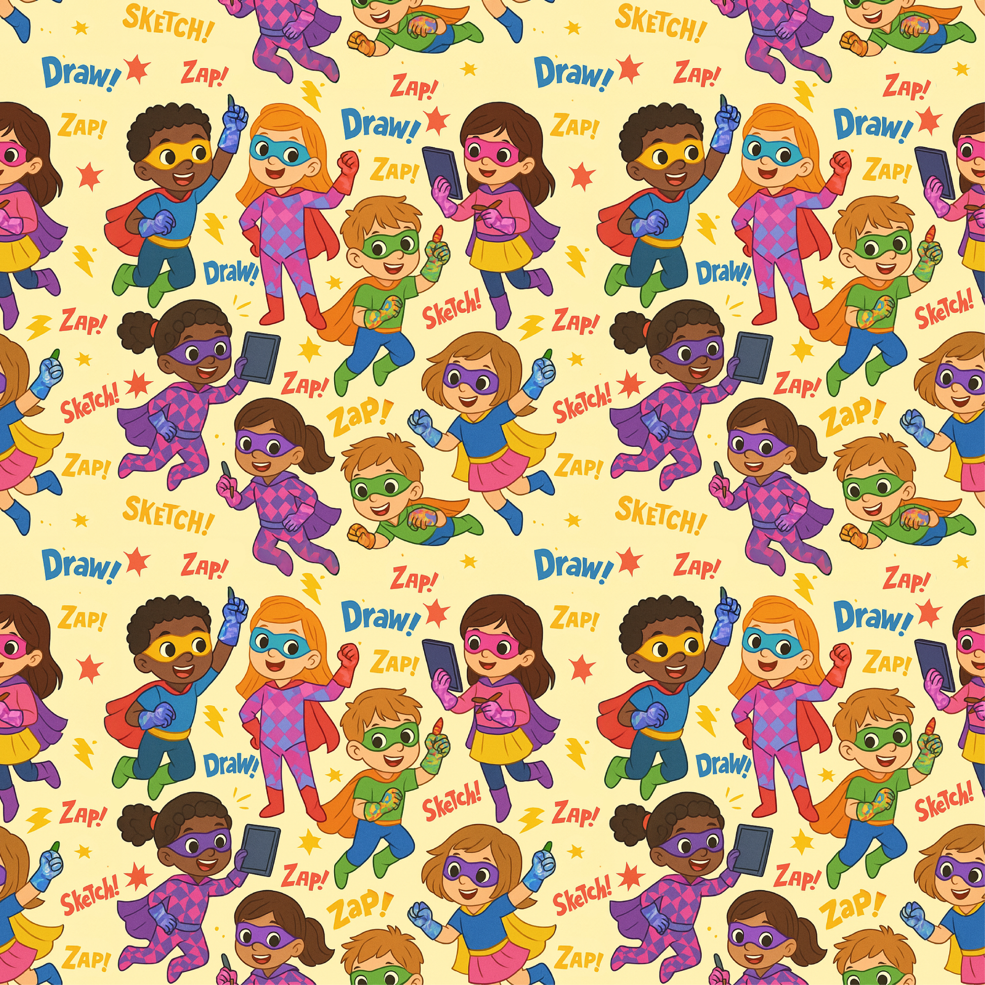 The Super Hero Drawing Kids Artse Gloves bring out the hero in every young creator. Covered in a colourful pattern of children dressed as superheroes, this playful design inspires imagination, adventure, and artistic fun. With comic-style words like “Zap!”, “Sketch!”, and “Draw!” scattered throughout, the gloves capture the excitement of storytelling and creative play. Handmade and made to order in three sizes, they offer a snug, breathable fit for little hands while reducing smudges and friction for a smoother drawing experience. Perfect for kids who love superheroes and love to create, these gloves make every art session feel like a super-powered adventure.